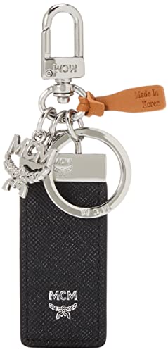 クラシカルでシックなデザインに定評があるドイツ発祥で韓国育ちのレザーブランド、エムシーエムのブランドアイコンがチャームで付いているキーホルダーです。