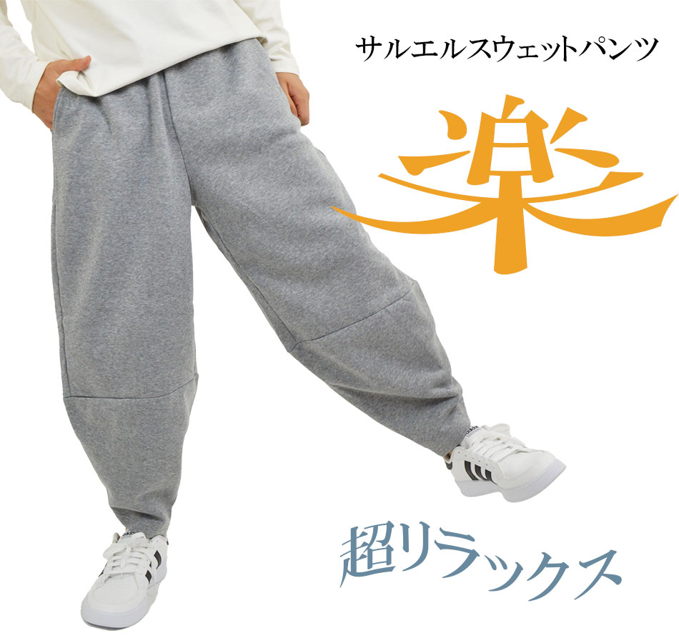 スウェットタイプでゆったり楽ちんに履けるこちらのサルエルパンツはいかがでしょう?裏起毛で暖かく履けるのも嬉しいです。