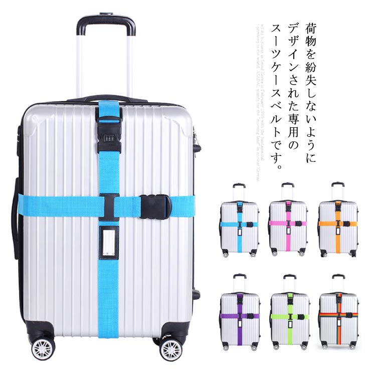 こちらのスーツケースベルトはいかがでしょうか。十字型なのでしっかりと固定されますしTSAロック付きで安心です。鮮やかなカラーが揃っているのもいいですね。