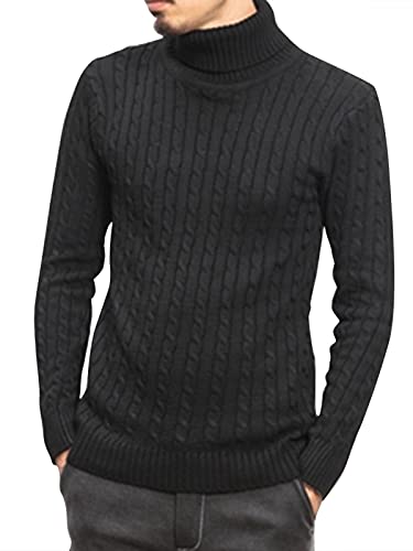 - [ワイエフ] ケーブルニット タートルネック セーター リブ編み カジュアル シンプル 無地 長袖 秋冬 メンズ カットソー きれいめ トップス 韓国ファッション Tシャツ お洒落 大人 プルオーバー 長袖Tシャツ 高襟 ハイカラ キレイめ 紳士 おしゃれ tシャツ スタイリッシュ ハイネック タウンユース 高見え 韓国 着回し ヘビロテ ベーシック キレカジ スタイル お兄 黒 ブラック M