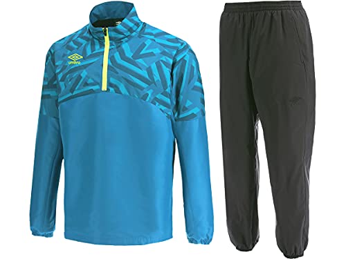 umbro(アンブロ)のピステの上下セットがおすすめです。防風性が高く、裏トリコットで保温性に優れています。秋冬シーズンのサッカーやフットサルの練習が快適にできますよ。幾何学模様がおしゃれで、他人とかぶりません。